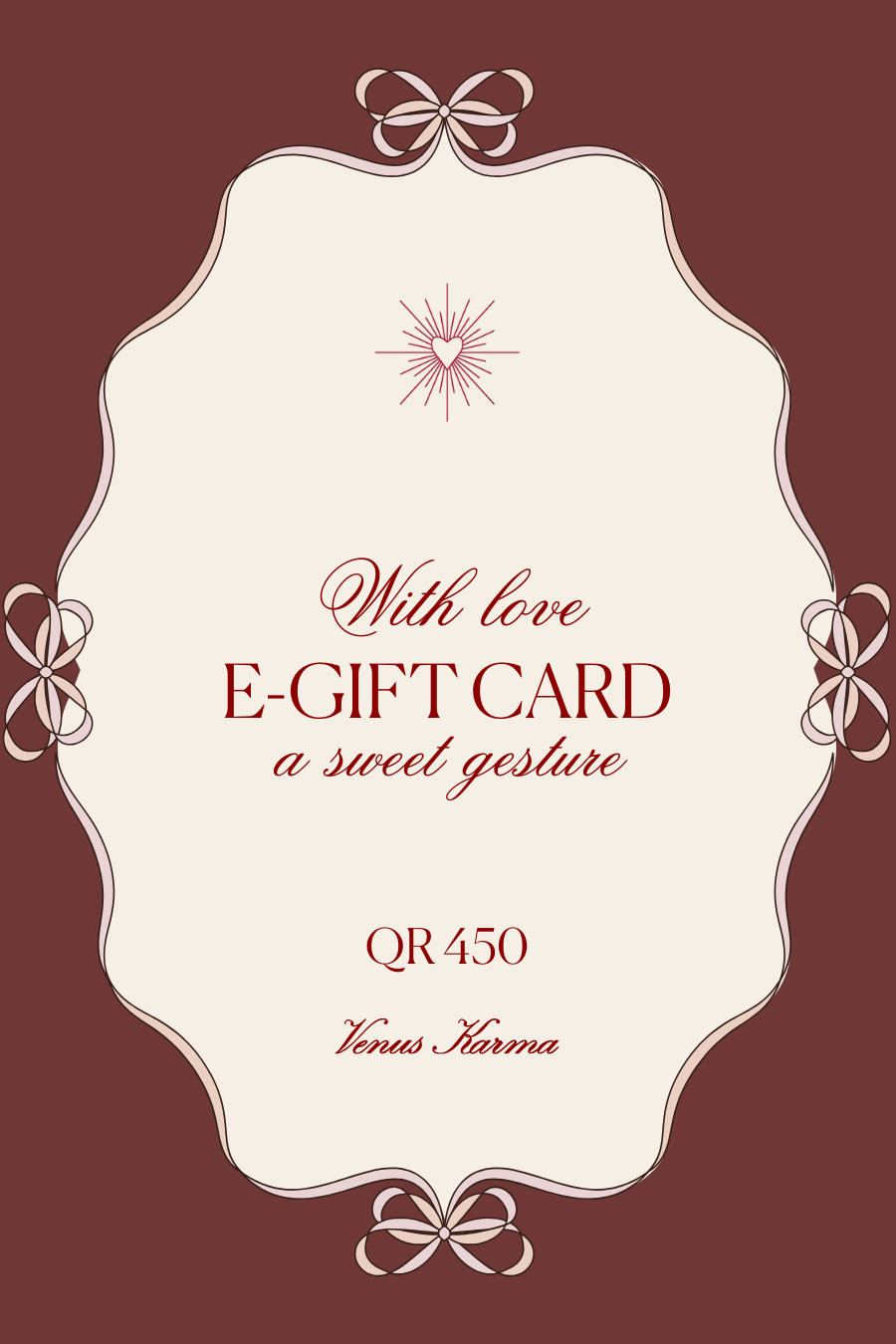 Let your loved ones choose their perfect gift with our Venus Karma E-Gift Card.