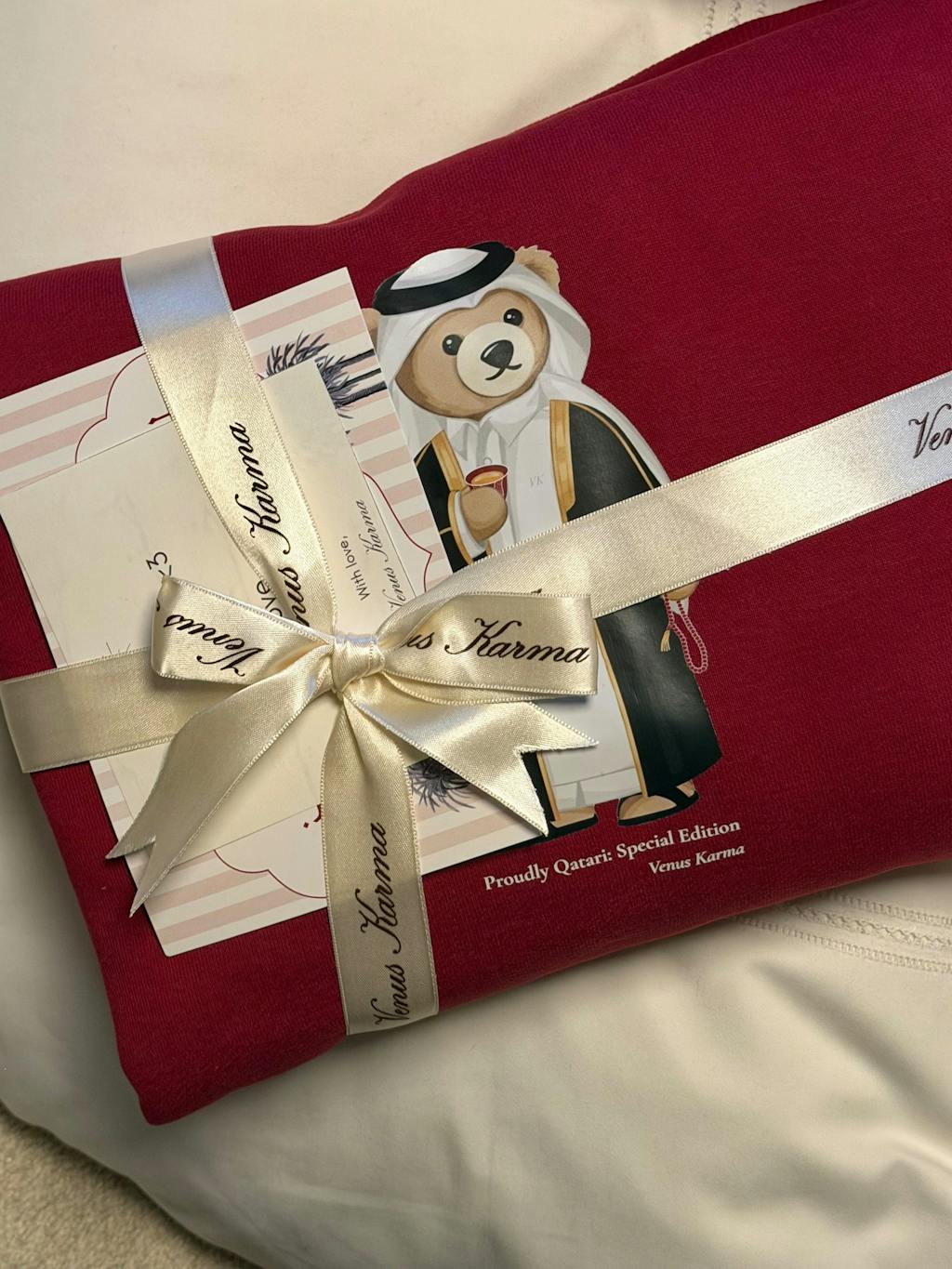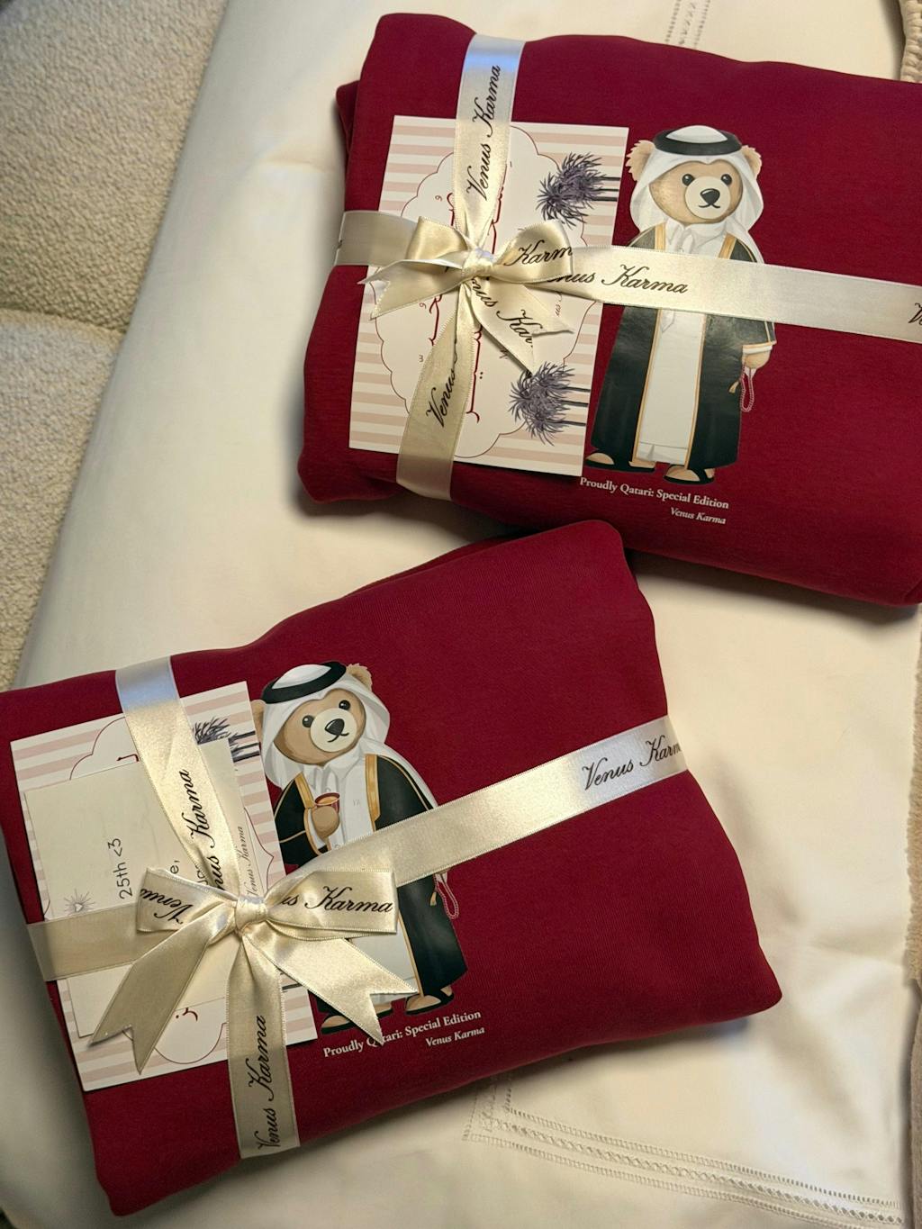 I had an absolutely exceptional experience with the Venus Karma team. Beyond the excellent quality of the sweater itself, the customer service was truly out of this world. I purchased my items while I was still in South Africa, and the team kindly kept them for almost three weeks, ensuring that someone was available on 31 December for me to collect when I arrived in Qatar. Their constant communication and responsiveness via email and WhatsApp made the entire process seamless and stress-free. I genuinely couldn’t have made a better choice. My only wish is that I could purchase more items now that I’m back in South Africa but I will proudly continue wearing my Qatari Bear sweater. Highly recommended!